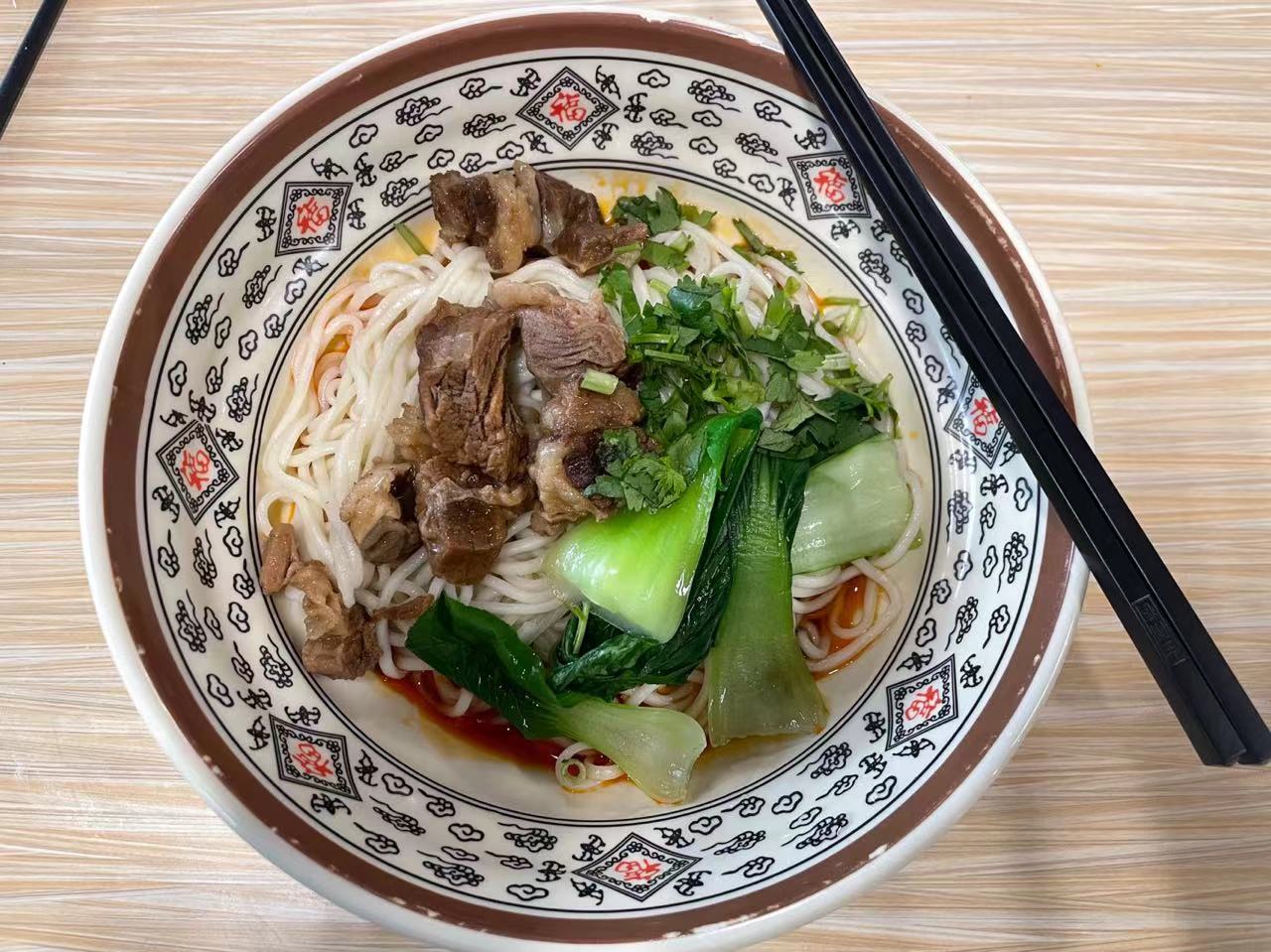 13 点交卷之后,走着去了第二食堂,到档口发现支付需要使用校内支付码,于是问了我前面的本校同学代刷,点了一份牛肉干拌面。